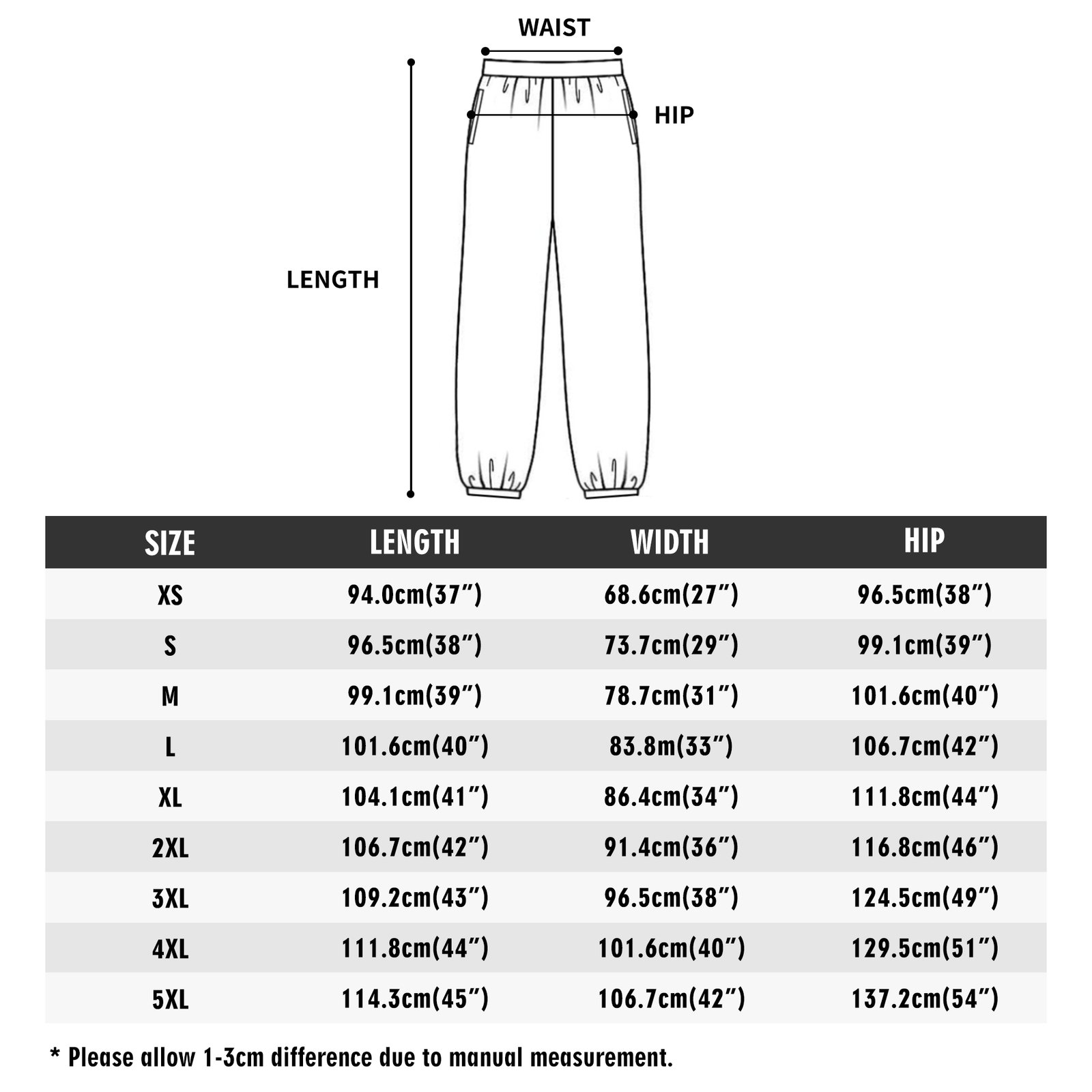 Disponibili in taglie che vanno dalla XS alla 5XL, questi pantaloni si adattano a una vasta gamma di corpi e dimensioni.