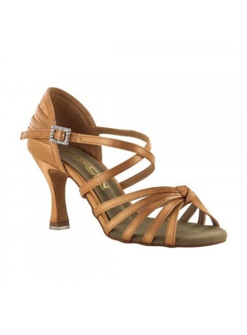 Scarpa da ballo 5 fasce con cristal strass in raso flesh tacco 7,5 cm