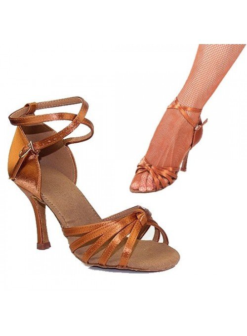 Scarpa da ballo 5 fasce con cristal strass in raso flesh tacco 7,5 cm