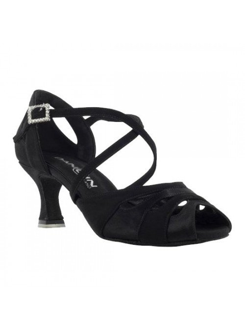 Scarpa da ballo spuntata in raso e nabuk nero , soletta antishock estremamente confortevole, indicate per tutti i tipi di ballo