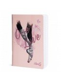 Quaderno A5 pinzato a righe. Il quaderno di compone di 40 fogli in carta da 80 g/mq, ha la copertina monopatinata da 350 gr, con plastificazione SOFT TOUCH che riporta una delle splendide immagini delle ballerine fotografate da Guido Sancilio.