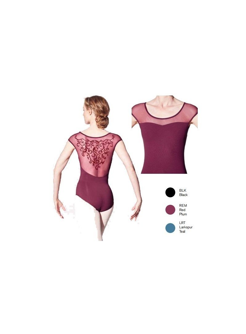 Vine flock back, sweet heart neckline cap sleeve leotard